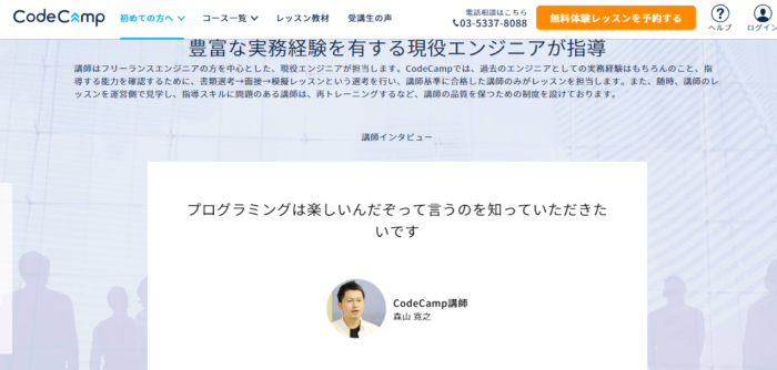 コードキャンプのホームページの講師一覧には、「プログラミングは楽しいってことを伝えたい」 という事が書いてありますが、どこが?というような対応。